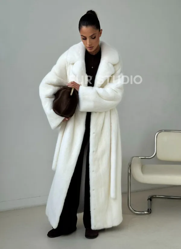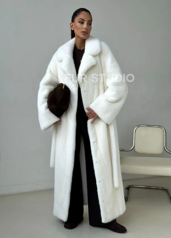 Белая длинная норковая шуба 102397
