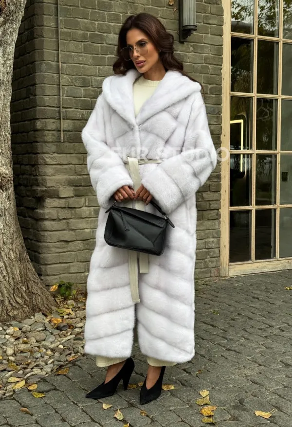 Белая норковая шуба с капюшоном 102342