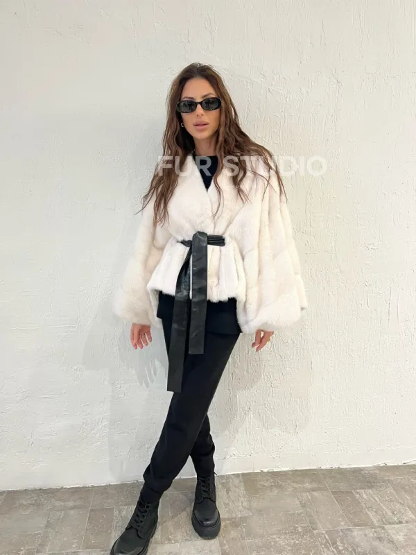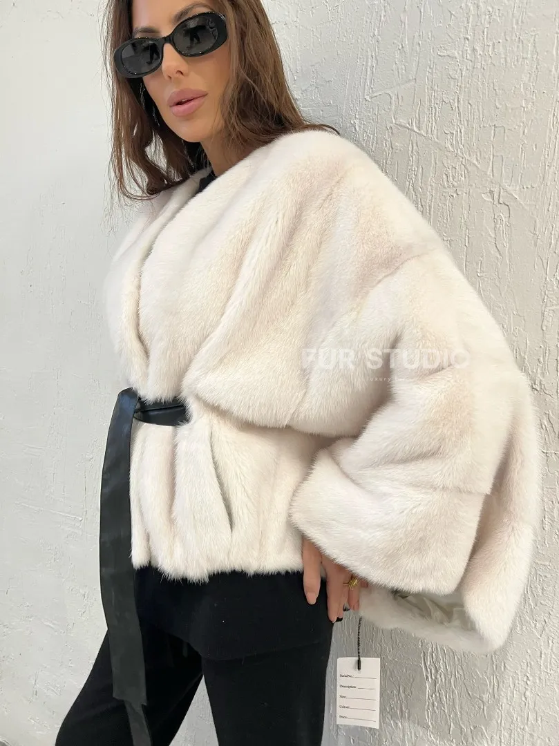 Белое болеро (жакет) из меха норки 100387