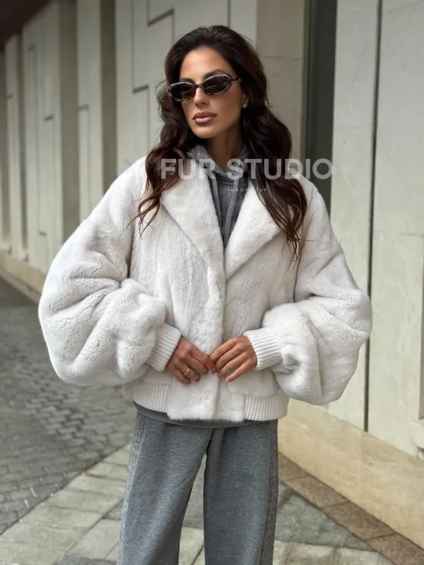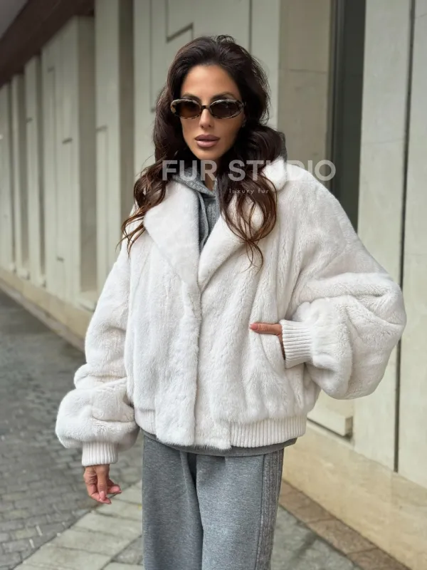 Белый норковый бомбер на резинке 102288