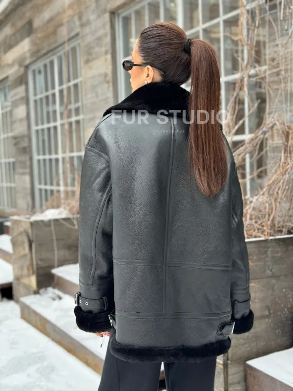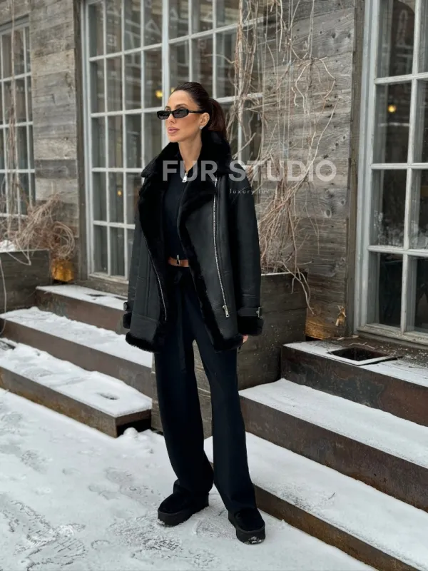 Черная дубленка авитор на овчине. Модель предлагается в размерах от 42 до 52. Оптимальная длина моделей 70-75 см подчеркивает линии вашей фигуры. Эта дубленка станет неотъемлемой частью гардероба для тех, кто предпочитает роскошь и утонченность натуральной кожи.