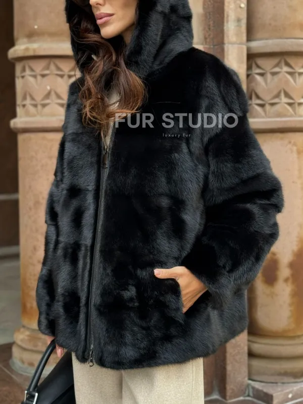 Черная норковая шуба с капюшоном доступна для покупки в нашем магазине Furs Studio в , с возможностью доставки в любой город России. Добавьте немного стиля и элегантности в свой гардероб с этой курткой, которая будет вам служить многие годы, подчеркивая ваш неповторимый стиль.