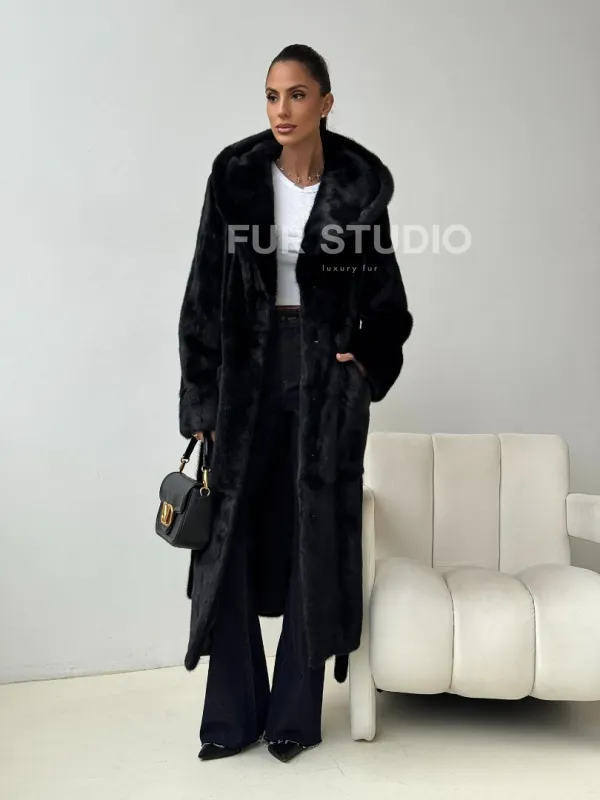 Черная норковая шуба с капюшоном доступна для покупки в нашем шоуруме Furs Studio в . У нас так же есть доставка во все города России. Добавьте немного роскоши в свой гардероб с этой шубой, которая будет служить вам многие годы.