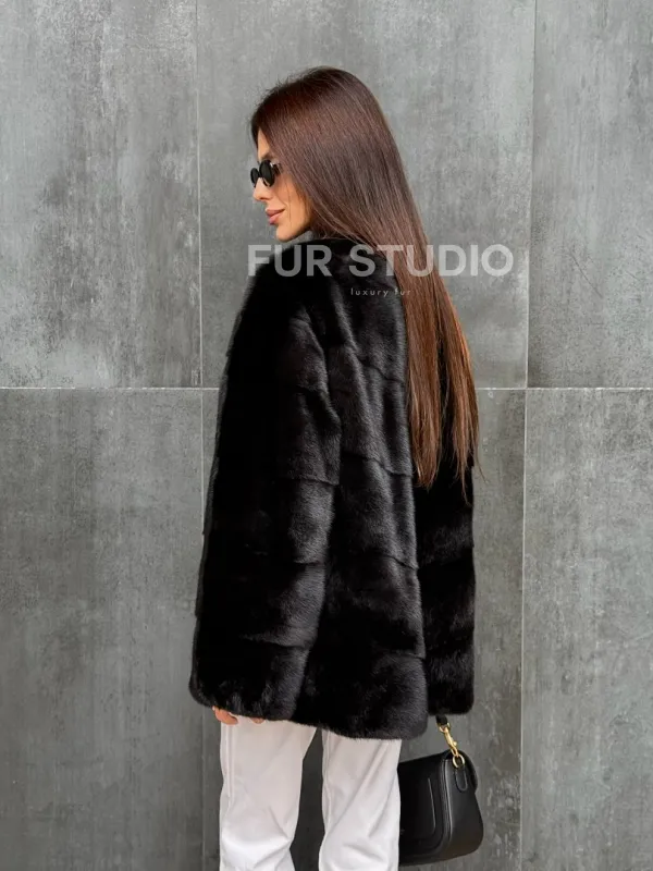 Черный норковый полушубок 102417