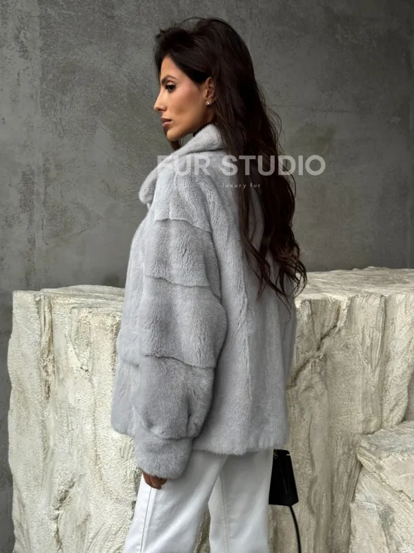 Мех данной шубы аукционная норка, цвет голубой. Предлагается в размерах от 42 до 50. Длина модели 65-70 см , что выгодно подчеркивает фигуру девушек. Эта модель идеально подойдет для девушек и женщин, предпочитающих роскошные натуральные меха.
