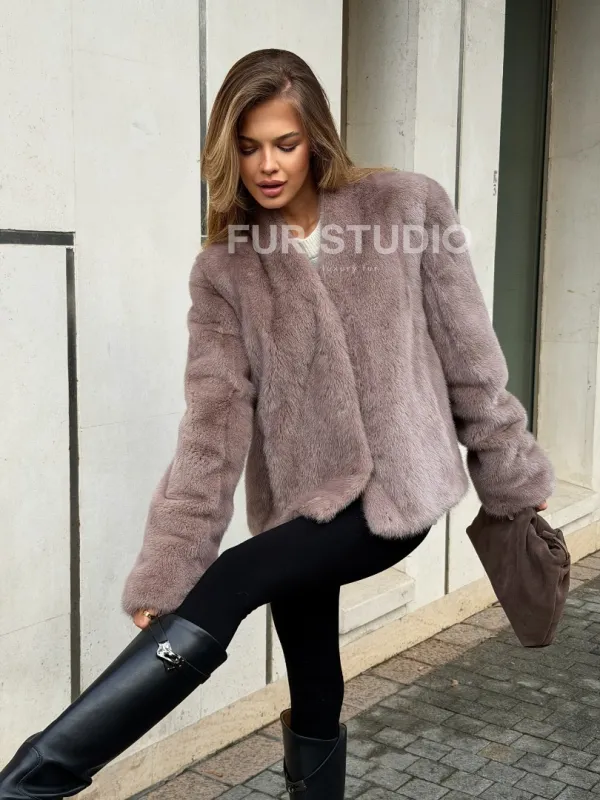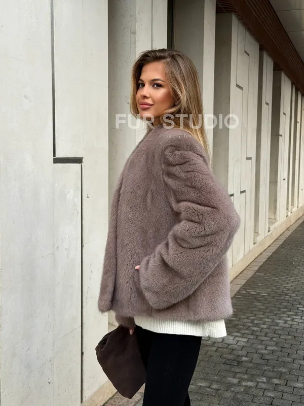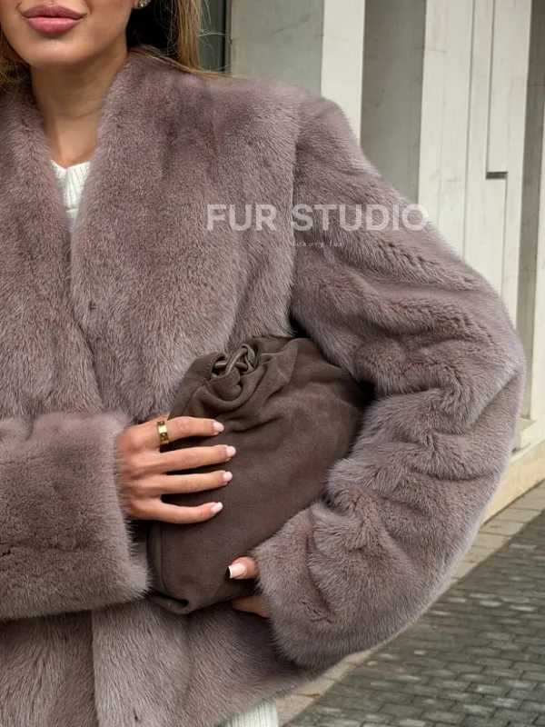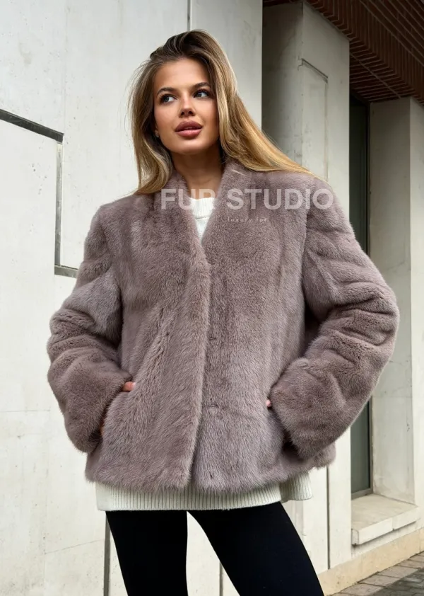 Мех данной шубы аукционная норка, цвет серый. Предлагается в размерах от 42 до 46. Длина модели 50-55 см, что выгодно подчеркивает фигуру девушек. Эта модель идеально подойдет для девушек и женщин, предпочитающих роскошные натуральные меха.