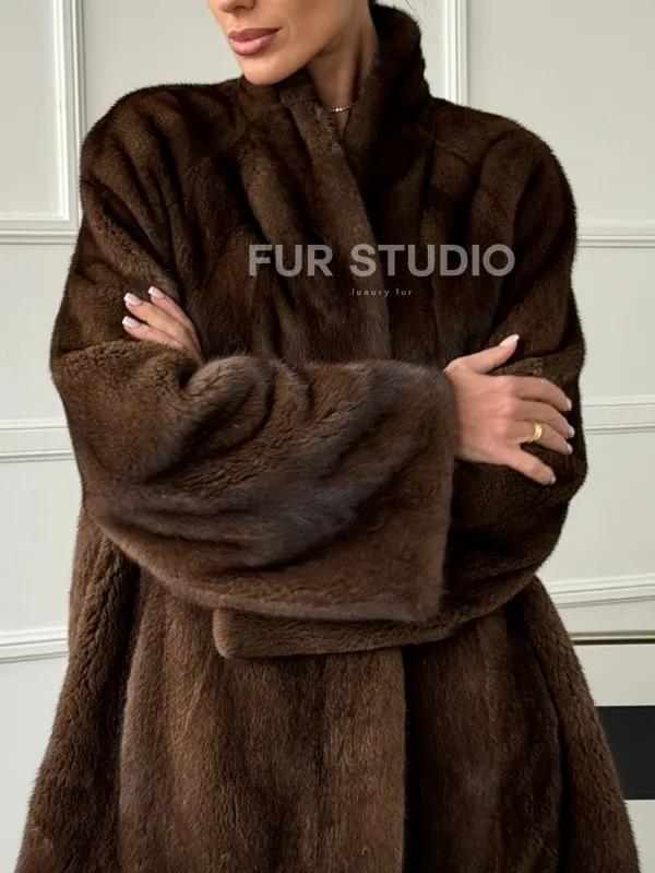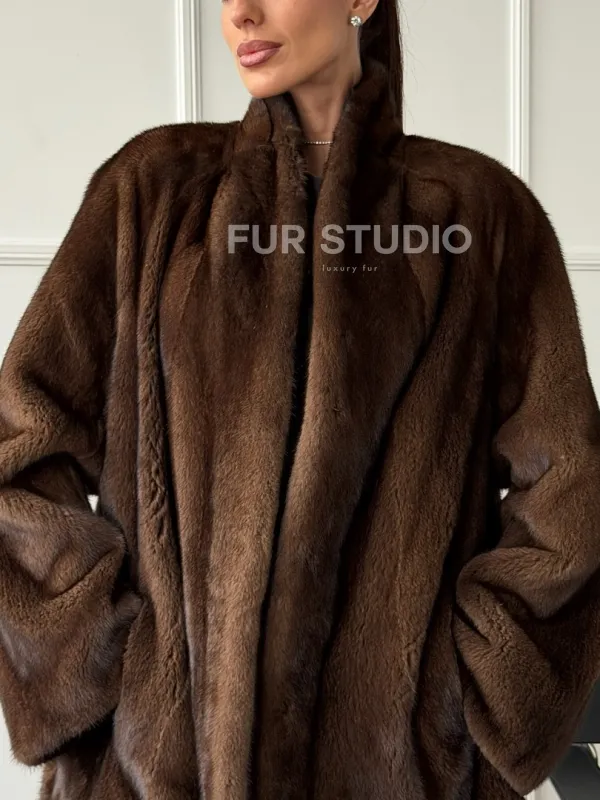 Мех данной шубы аукционная норка , цвет коричневый. Предлагается в размерах от 42 до 52. Длина модели 70-75 см, что выгодно подчеркивает фигуру девушек. Эта модель идеально подойдет для девушек и женщин, предпочитающих роскошные натуральные меха.