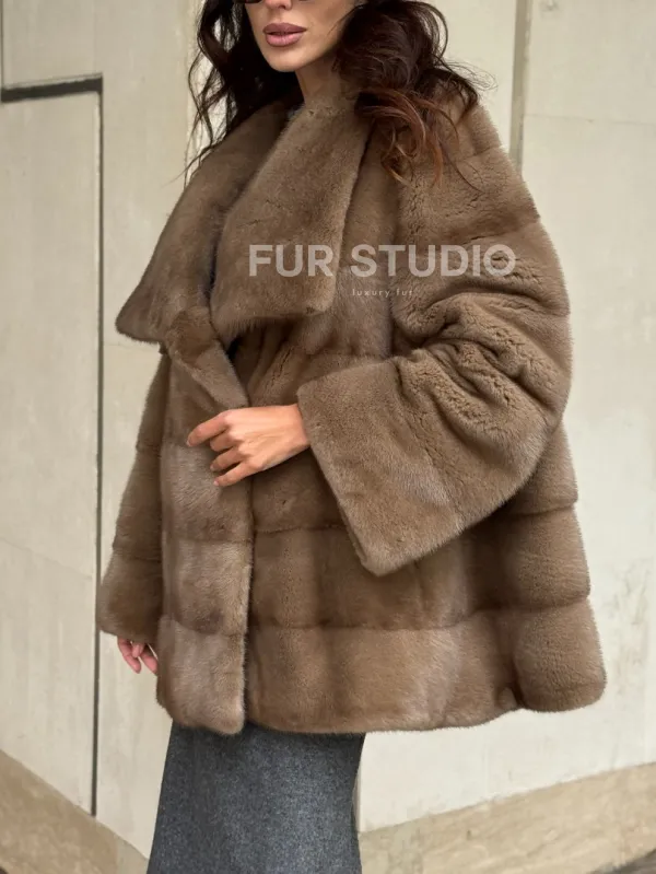 Норковая шуба бежевая 102302