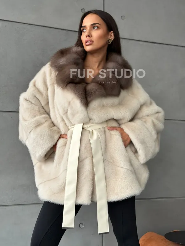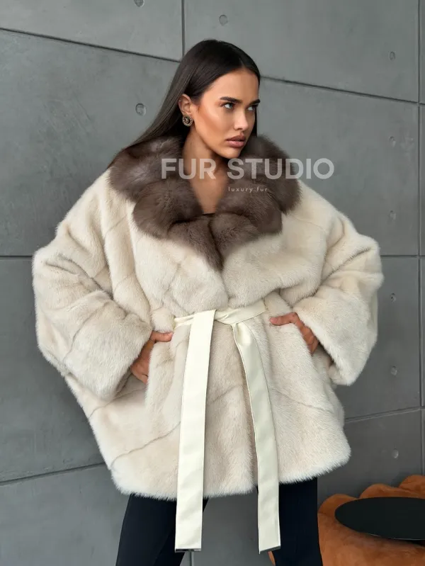Норковая шуба - куртка с мехом куницы 102793