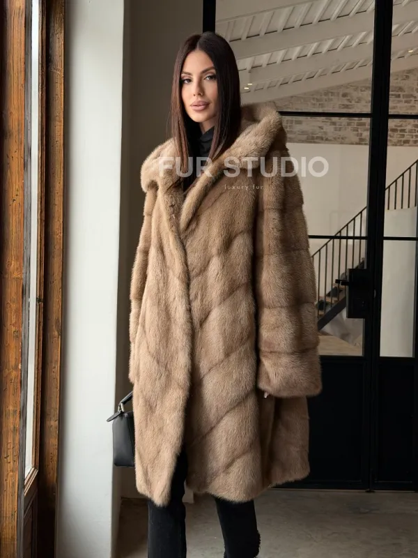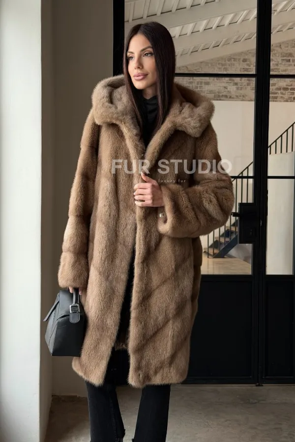 Норковая шуба с капюшоном - цвет пастель доступна для покупки в нашем шоуруме Furs Studio в . У нас так же есть доставка во все города России. Добавьте немного роскоши в свой гардероб с этой шубой, которая будет служить вам многие годы.
