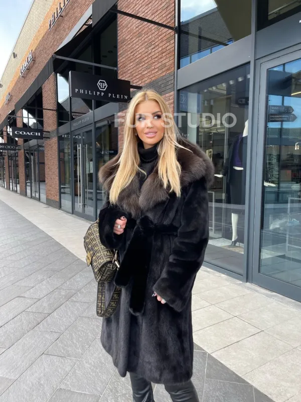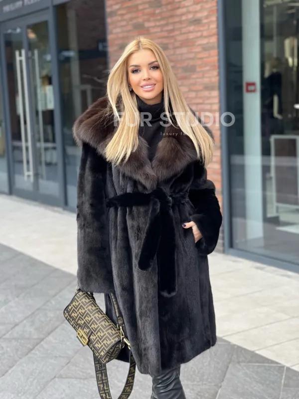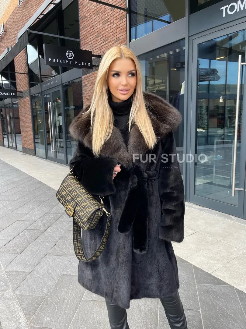 Норковая шуба с капюшоном из меха соболя седена 1/2 100101
