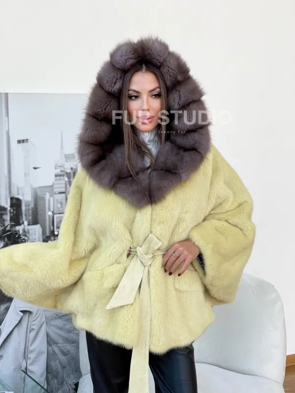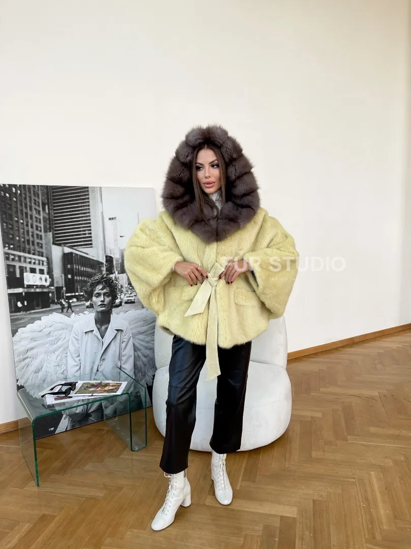 Норковое пончо с капюшоном из меха куницы – выбор девушек, которые любят приковывать взгляды. Необычный цвет будет собирать восхищенные взгляды и выделит из толпы. Нежный мех норки согреет в любую непогоду в холода. Высокое качество изделия будет радовать долгие годы. Широкий капюшон из меха куницы бережно защитит от непогоды и ветра прическу.