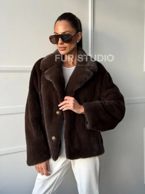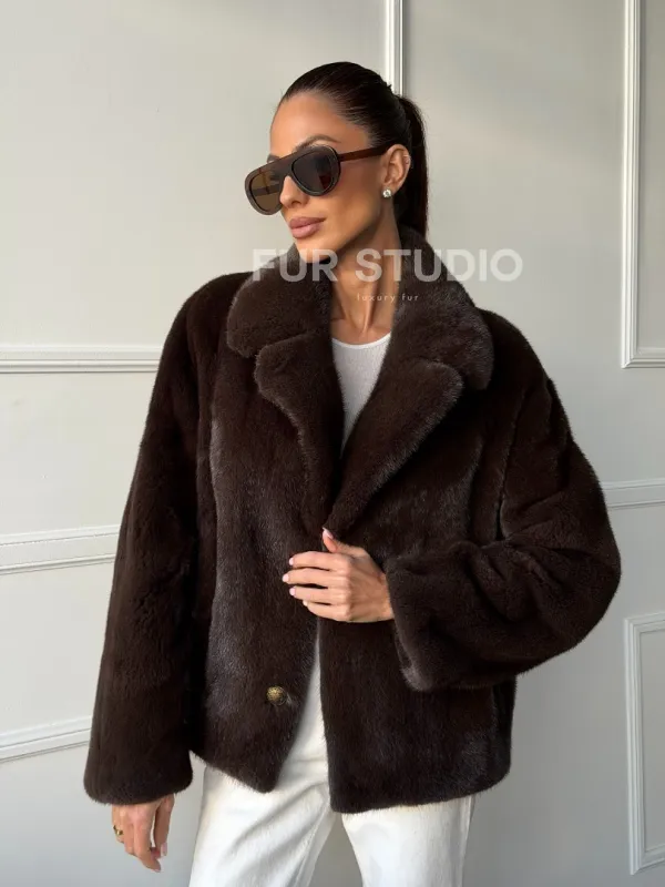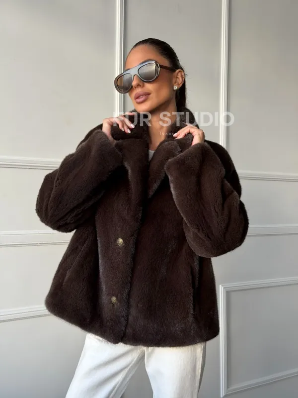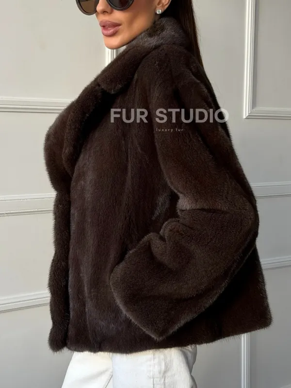 Мех данной шубы аукционная норка, цвет коричневый. Предлагается в размерах от 42 до 48. Длина модели 55-60 см, что выгодно подчеркивает фигуру девушек. Эта модель идеально подойдет для девушек и женщин, предпочитающих роскошные натуральные меха.