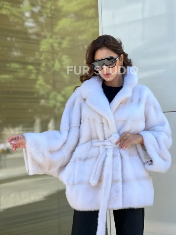 Меховой пояс очертит талию, и образ получится воздушным, нежным. Изделие согреет хозяйку в любую непогоду. Удобный воротник позаботится о том, чтобы шея не замерзла. Широкие рукава выгодно подчеркнут изящество ручек. В такой модели вы будете чувствовать себя королевой. Купить пончо из датской норки в цвете паломино – отличное вложение для дам, кто имеет безукоризненный вкус и чувство стиля.