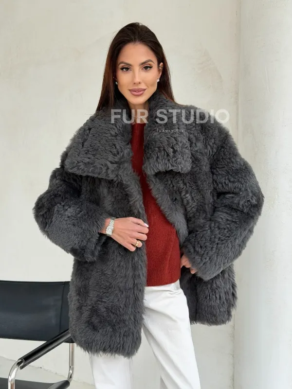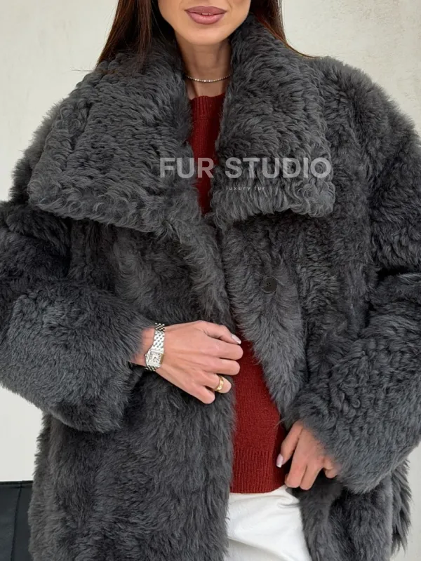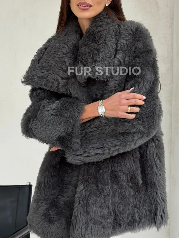 Серая дубленка из тиградо 102682