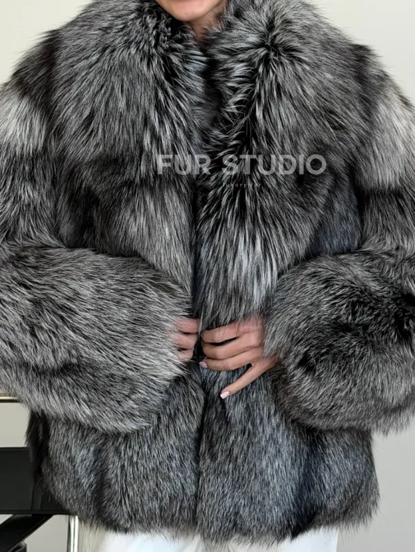 Мех данной шубы лиса, цвет серый. Предлагается в размерах от 42 до 46. Длина модели 60-65 см, что выгодно подчеркивает фигуру девушек. Эта модель идеально подойдет для девушек и женщин, предпочитающих роскошные натуральные меха.
