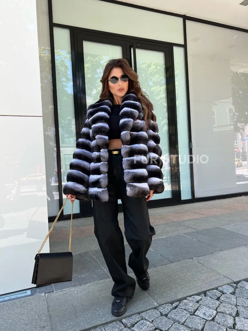 Шуба из меха шиншиллы с шалевым воротником 100239