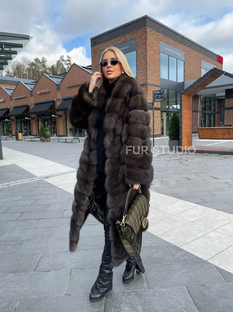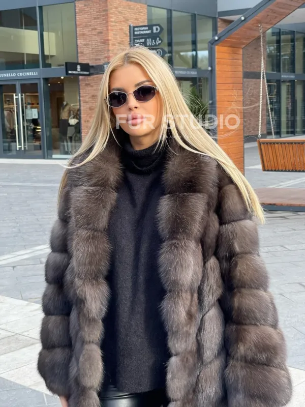 Воротник шаль согреет шею в непогоду и подчеркнет ее изгибы. Широкие рукава делают акцент на тонкости кистей. Изделие отлично сочетается с классикой, стилем casual, подойдет под вечерний look. В модели вы будете выглядеть дорого и лаконично. Купить шубу из меха соболя воротник шаль – стоящее вложение в себя, в такой верхней одежде вы постоянно будете ловить восхищенные взгляды.