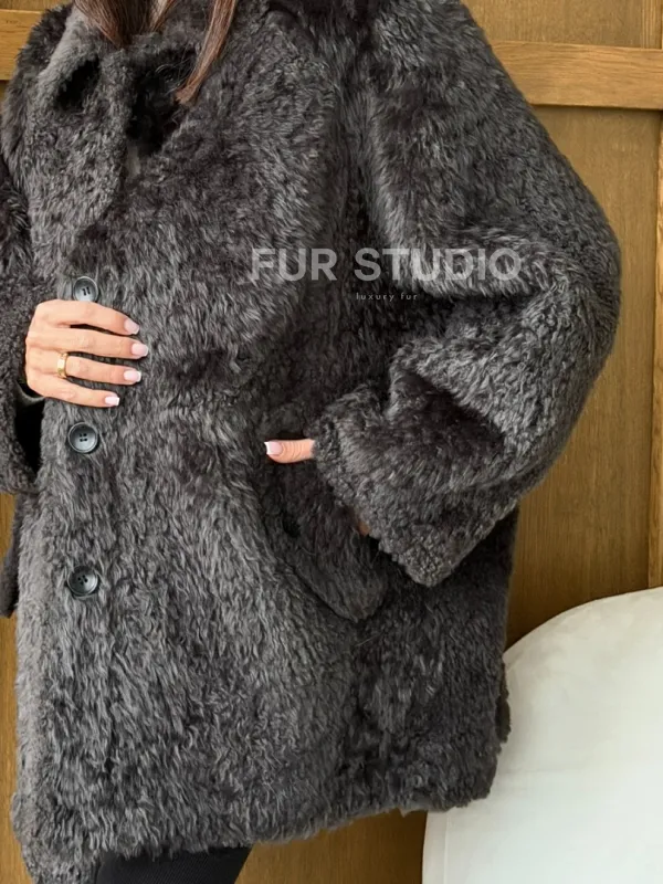 Шуба из овчины - натуральная. Модель предлагается в размерах от 40 до 50 (oversize). Оптимальная длина моделей 75-80 см подчеркивает линии вашей фигуры. Эта дубленка станет неотъемлемой частью гардероба для тех, кто предпочитает роскошь и утонченность натуральной кожи.