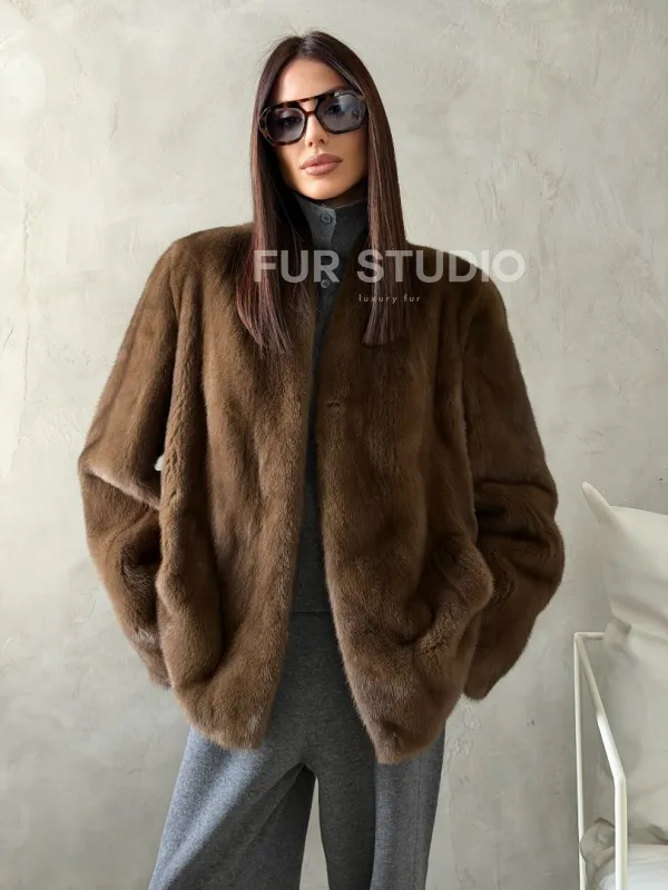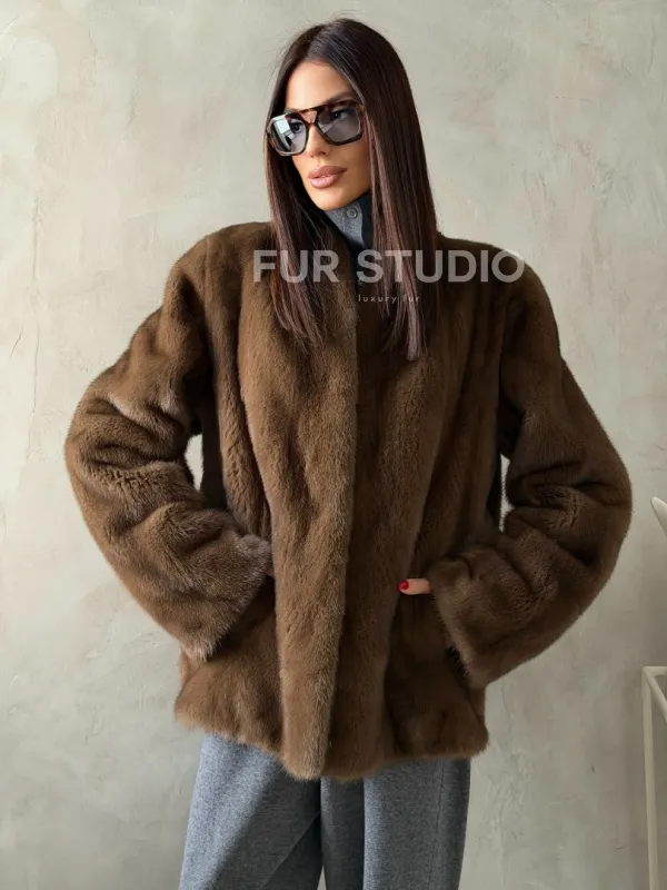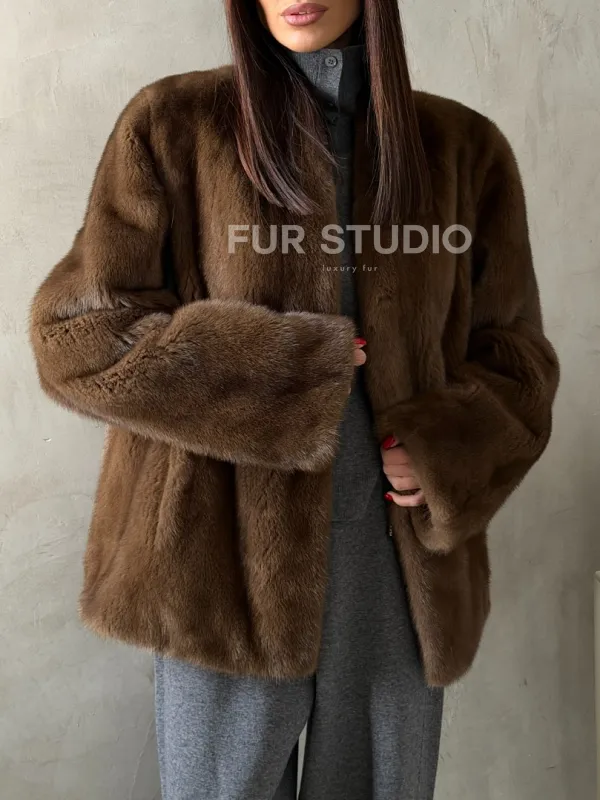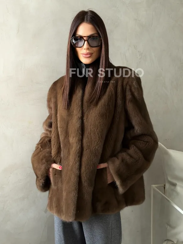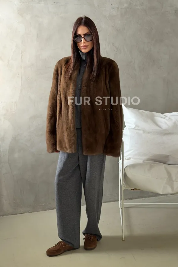 Мех данной шубы аукционная норка , цвет коричневый. Предлагается в размерах от 42 до 50. Длина модели 65-70 см, что выгодно подчеркивает фигуру девушек. Эта модель идеально подойдет для девушек и женщин, предпочитающих роскошные натуральные меха.