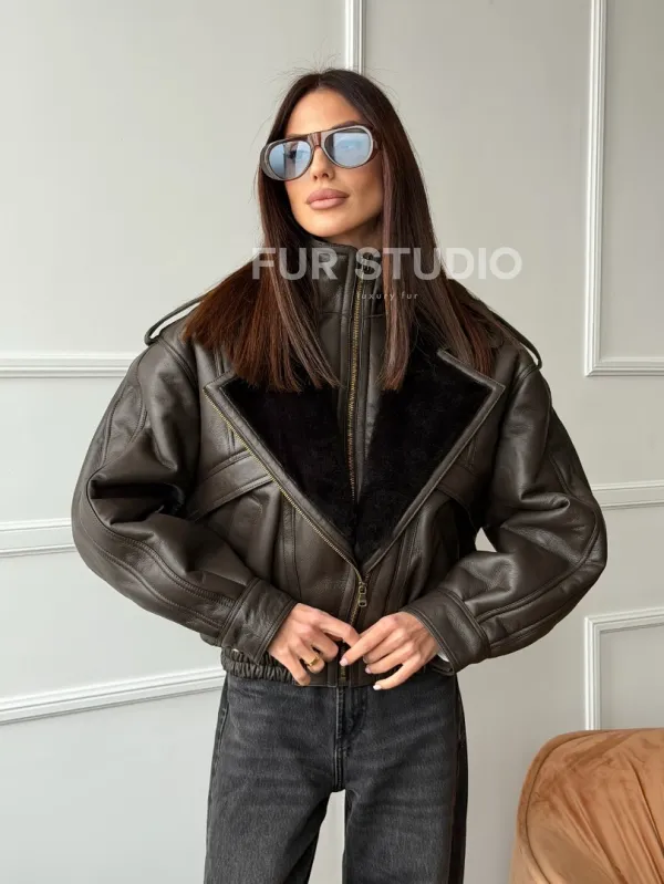 Стильная куртка - дубленка из овчины 102762