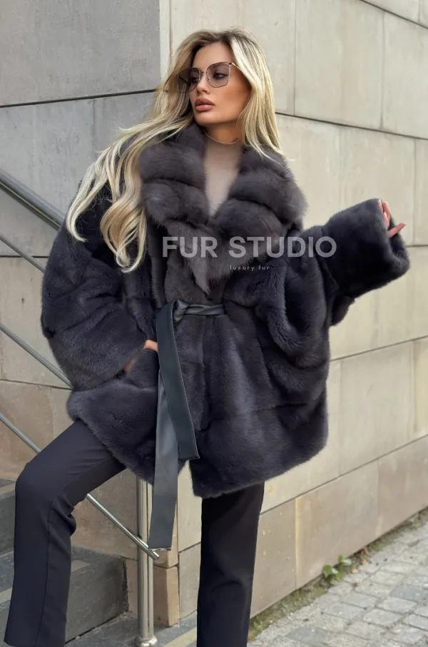 Мех данной шубы аукционная норка , цвет серый. Предлагается в размерах от 42 до 56. Длина модели 75-80 см, что выгодно подчеркивает фигуру девушек. Эта модель идеально подойдет для девушек и женщин, предпочитающих роскошные натуральные меха.