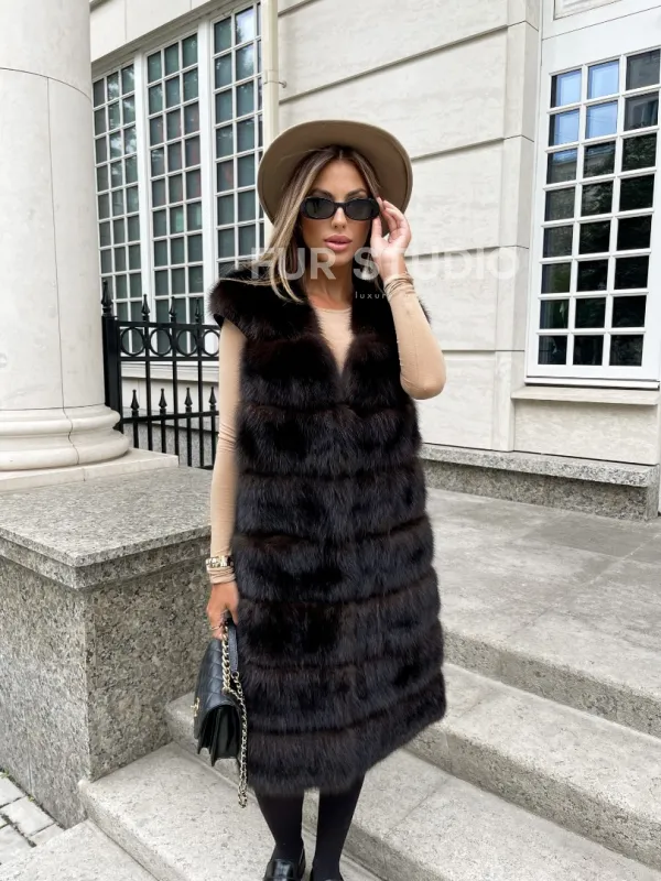 Жилет из куницы в цвете соболь 100285