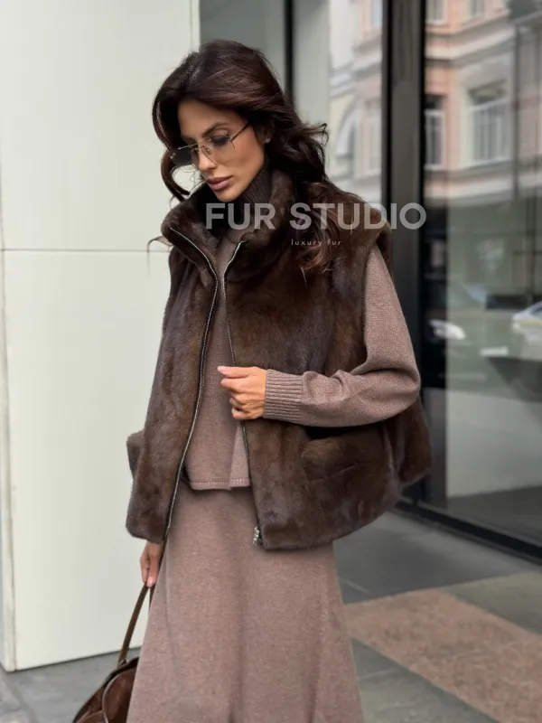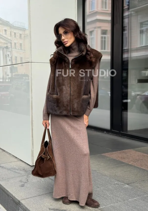 Жилет из норки доступен для покупки в нашем шоуруме Furs Studio в . Мы также предлагаем удобную доставку во все города России. Приобретите немного роскоши для вашего гардероба с этой осенью-зимой!